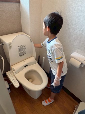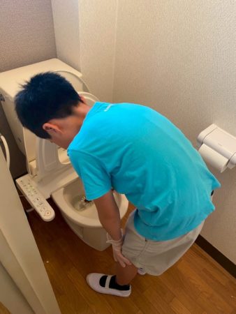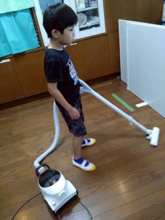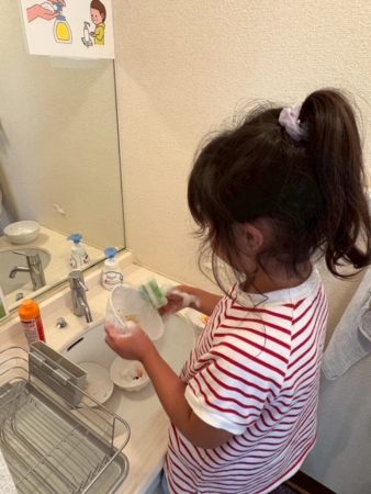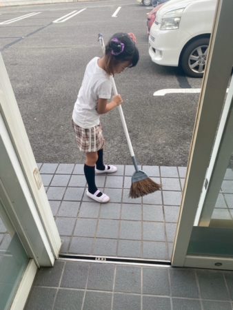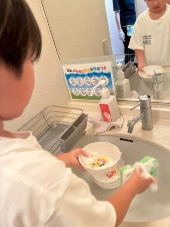 雑巾がけ・お皿洗い・掃除機・トイレ・玄関などを日替わりで決めて、自分たちが使う場所をみんなでお掃除しました。ピカピカになると気持ちいいね😊