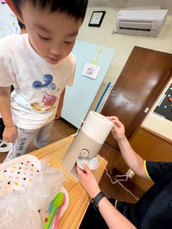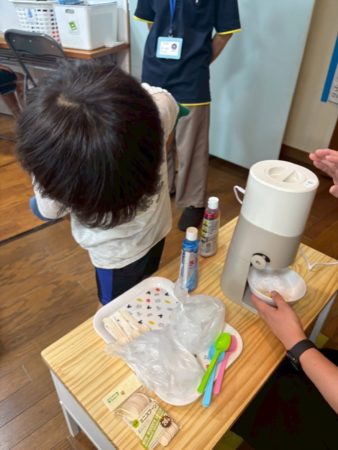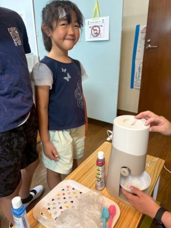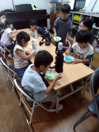 夏祭りでも大人気だったカキ氷をおやつで食べました!アイスをのせて夏を満喫です🎐