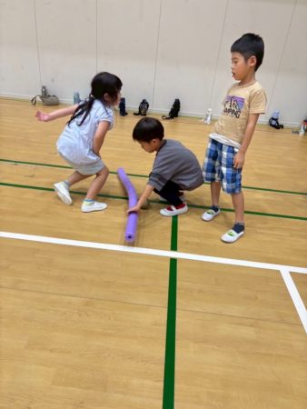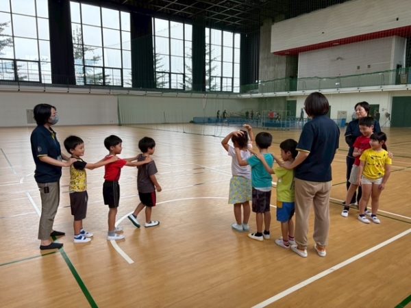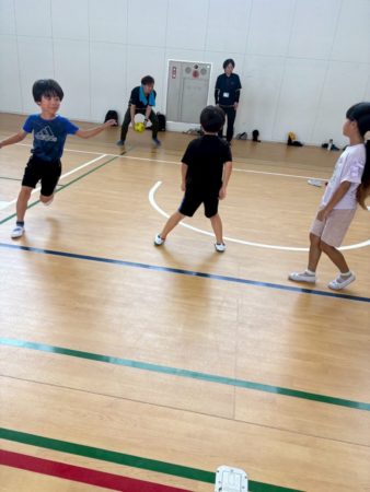近くの体育館へ行きました。鬼ごっこやボール遊びなど、室内ではできないダイナミックな動きが必要となる活動を、みんなで汗びっしょりになって、い~っぱい行いました😊