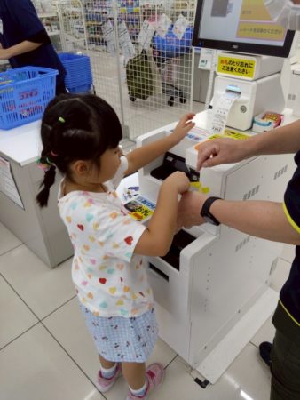 ドラッグストアでは「どれを買える??」と悩みながら品物を選び、自分のお財布からお金を渡し、上手にお買い物できました。
