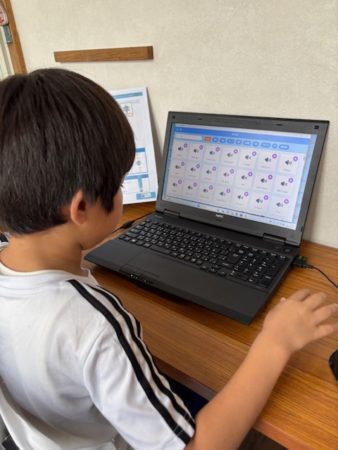 プログラムを作るための命令ブロックの種類を少しずつ覚え、プログラムが動かないとテキストを見て間違いがないかどうかを確認することができるようになってきました。