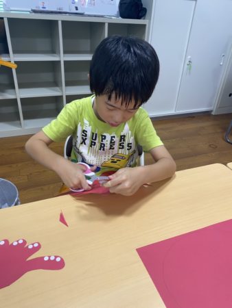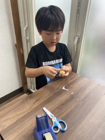 たこの足を切るのが難しいのですが、ハサミを色んな角度から入れて工夫して切ることができました☆
