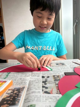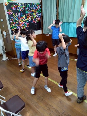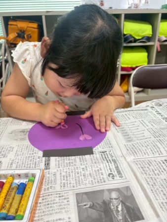夏祭りで使用する壁面を、子ども達に可愛くしてもらいました😊
