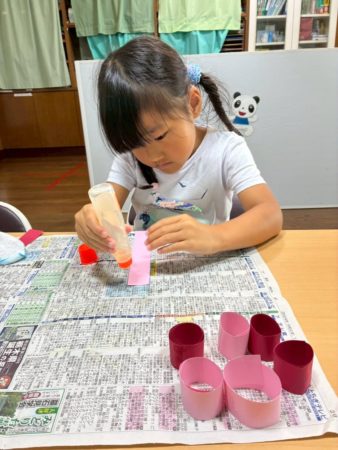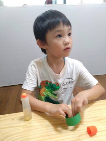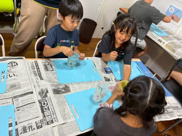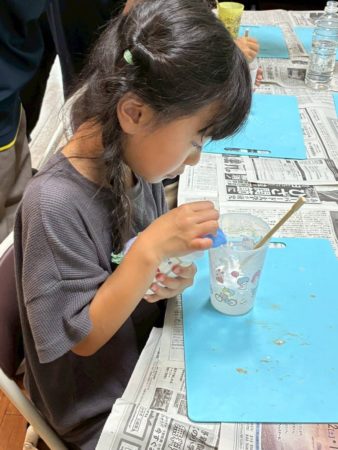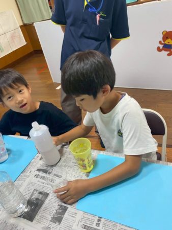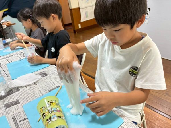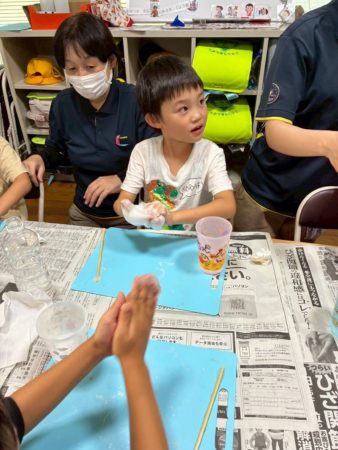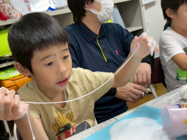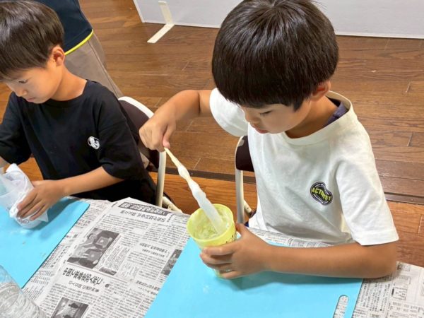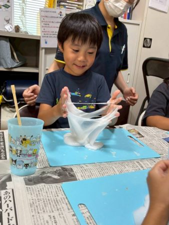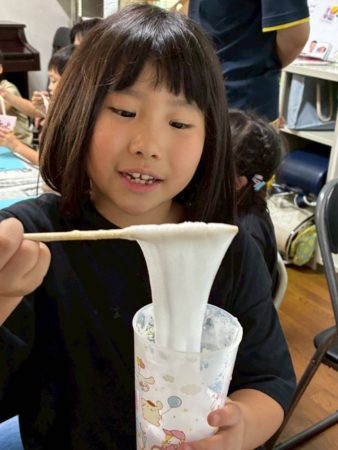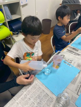 手順表を見ながら、自分で計量してスライムを作りました☆目盛りまで量ること、混ぜることが以前よりも上手になりました✨