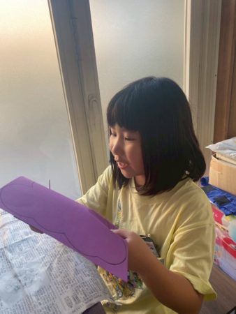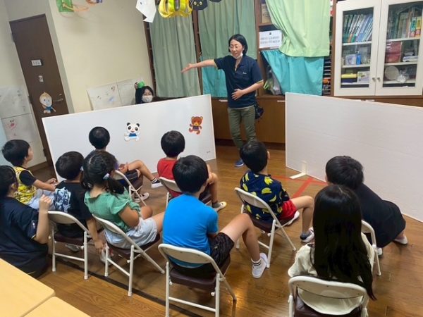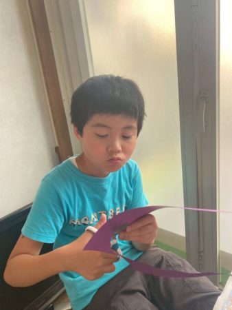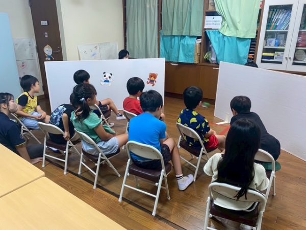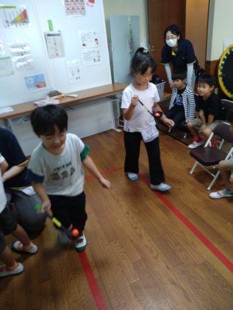 パーテーションの間を通る物を当てる、という動体視力を使う活動です。