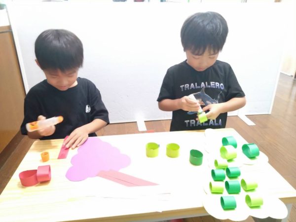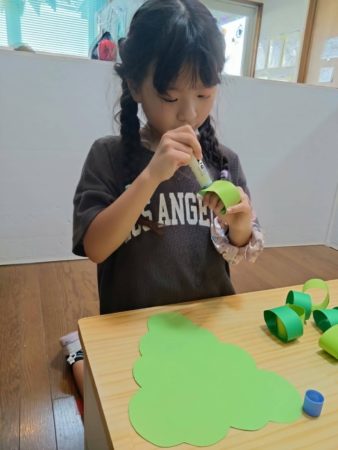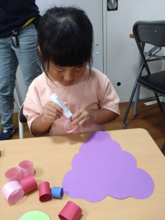 秋の壁面製作では、ぶどうを作りました😊ぶどうの粒は、輪っかを作りました🎵指先を使って作ることができました☆